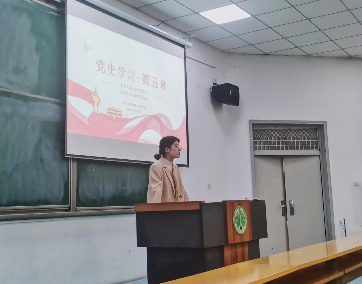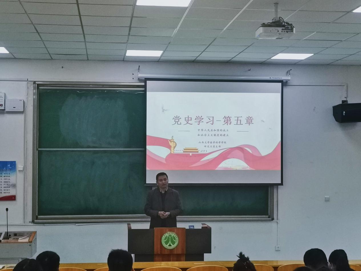 本次会议由研究生党员王帅领学,与各位党员一起学习《中国共产党简史》中的第五章内容:中华人民共和国的建立和社会主义制度的建设。王帅同志以时间为主线,介绍了中华人民共和国的成立、抗美援朝战争、土地改革等内容。领学结束后,白玲同志表示,中国共产党时刻秉承着全心全意为人民服务的宗旨,带领人民克服重重困难,作为后辈,要勇担新时代重任,贡献青春力量。曹兰枝同志感慨,当今成就来之不易,要牢记历史,坚定信念,为中国特色社会主义事业作出应有贡献。