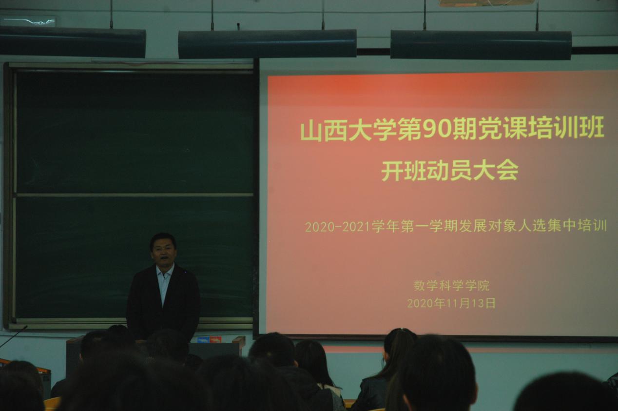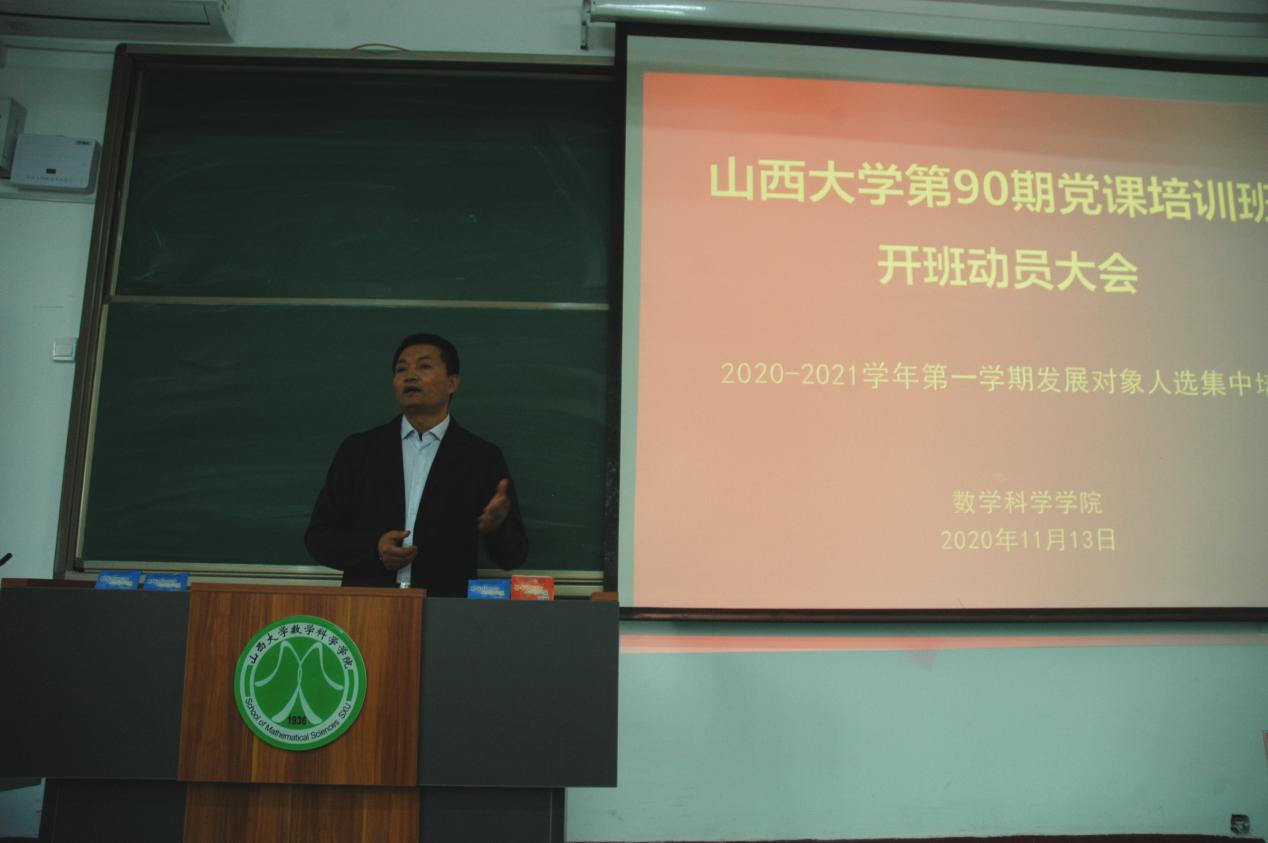 11月13日下午,根据《山西大学发展党员工作实施细则》(修订)和学校组织部安排,数学科学学院举办了第90期党课培训班开班动员大会,来自学院本科生和研究生的70名入党积极分子参加了大会,学院党委书记王斐出席大会并发表讲话。
