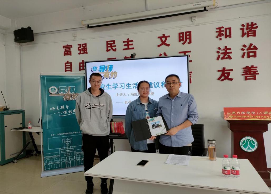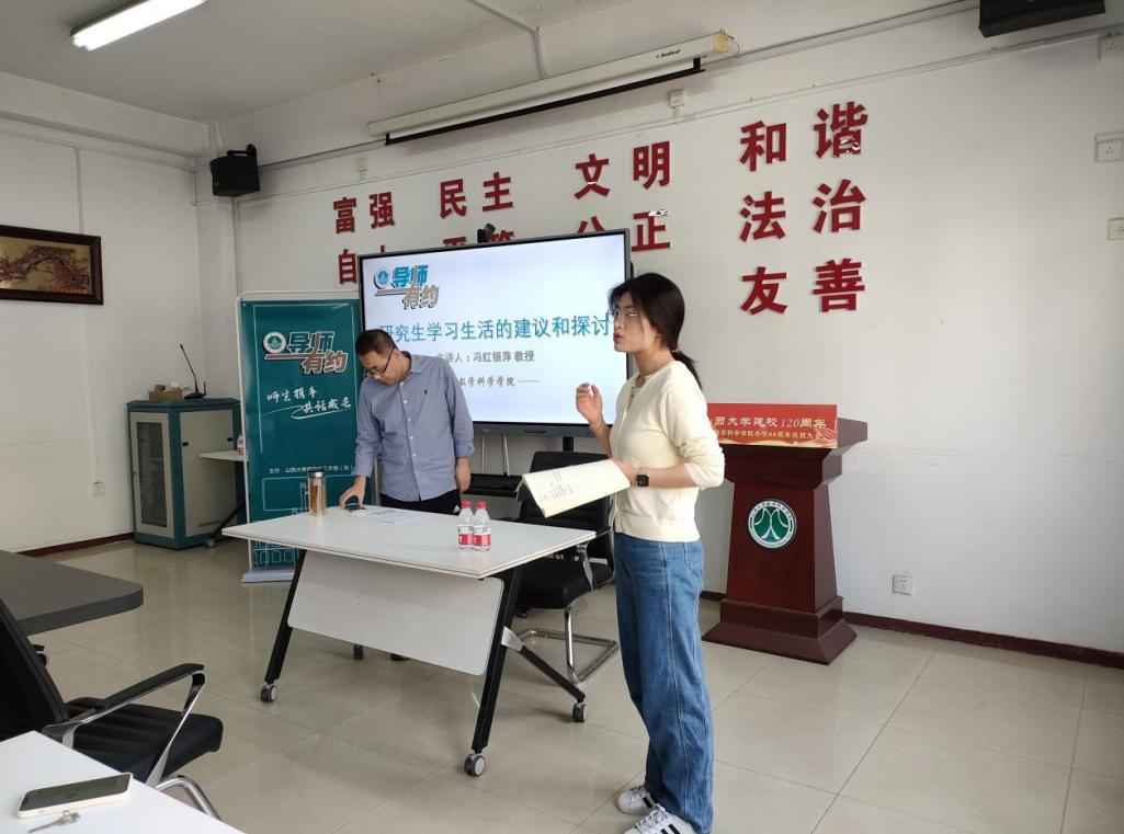 本次讲座的活动主题为“研究生学习生活的建议和探讨”。冯老师主要从目前学生的就业与升学的选择问题、朝着什么样的方向努力、怎样开展实施等方面进行了详细的介绍。
