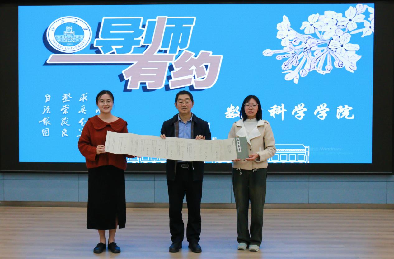 靳祯的育人理念和经验为同学们提供了宝贵的指导,对于提升研究生教育质量和培养更多有社会责任感的人才具有重要意义。活动最后,2023级研究生代表上台为靳祯教授送上了学院研究生们自己制作的《数说数学》百年历史画卷。