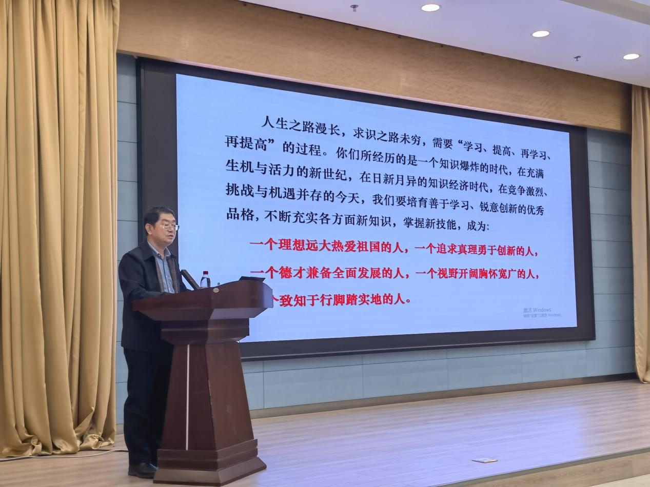 靳祯从不忘初心、立德树人的角度分享了自己36年的育人历程。他表示,拥有良好的道德品质,具有真正的学术精神是人才培养的关键。他强调,教师要力戒浮躁、孜孜不倦,攀登知识高峰,切实提高教书育人能力。同时,作为一位老学长,靳祯教授倡导同学们要具有广阔的思维,多角度地去观察和思考问题,要敢于下功夫,下真功夫,做到嘴勤、腿勤、手勤、脑勤,要不断扩大自己的知识眼界,真正将研究应用于社会,服务于社会。靳祯教授勉励同学们能够在科研生活中做好三件事:成长、知识积累和知识应用。只有站在前人的肩膀上发现新的问题,不拘于常识才能够找到全新的思路与解法,才能够创新创造。