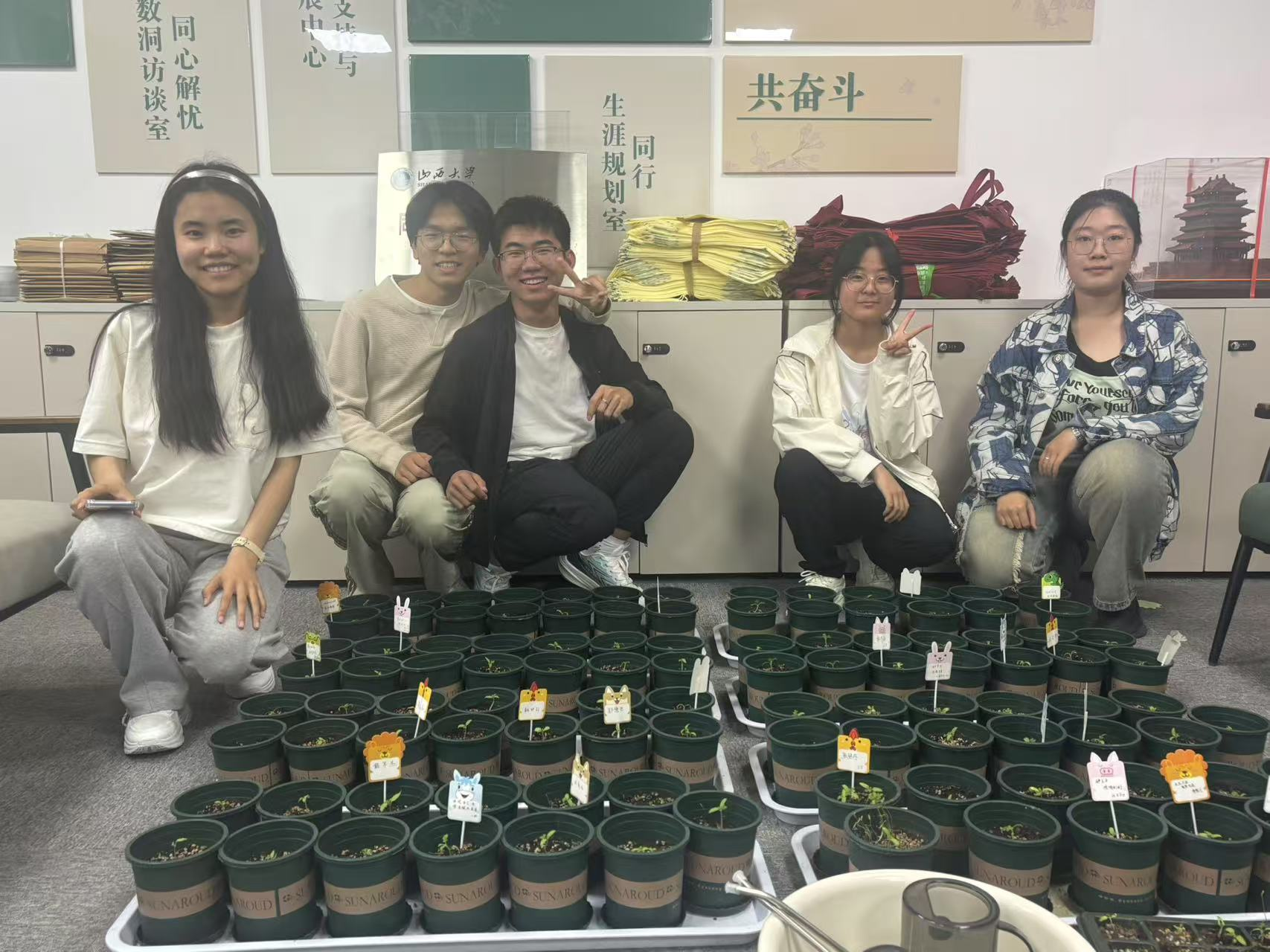 5月8日,“心育番茄·‘数’洞里的番茄养成计划”迎来温情领养日。活动自3月启动以来,吸引了学院内外百余名师生参加。在工作室成员的指导下亲手播种、悉心培育,见证了种子破土成芽的生命奇迹。领养仪式上,同学们将写上心愿的卡片植入盆栽,用“以心育苗,以苗润心”的方式感悟成长真谛。这场跨越学科的劳动教育实践,巧妙地融合了生命教育与情绪疗愈功能,让同学们在亲近自然、体验生命的过程中,释放压力、舒缓情绪,同时也在学生心灵深处种下了一颗热爱生命、珍惜生活的种子。