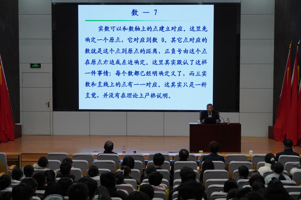 席南华院士从“数”与“形”两大主题展开数学画卷:先沿“数”脉,由“怎么知道有数”到“数是否够用”,历数无理数、戴德金分割、康托尔基本序列,指出今日数学皆立脚于实数公理;再沿“形”脉,自欧氏第五公设两千年悬案,到射影几何引入无穷远点与不变量,再到笛卡尔把代数注进曲线,展示“几何即结构”的层层跃迁。席南华院士在变量数学方面指出微积分地位最高,基于微积分可解决一系列数学问题并催生多种成果。此外,报告还提及将军饮马等案例和随机游走问题展现出的数学智慧。